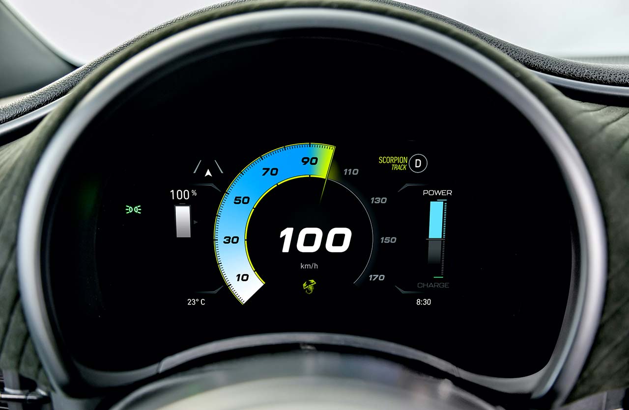 El nuevo producto de Abarth utiliza un motor eléctrico que genera 154 caballos y 235 Nm de torque. La conducción se divide en tres modos de manejo. Uno de ellos es el Turismo, que disminuye la potencia (136 CV) y el torque (220 Nm). El Scorpion Street incrementa frenado regenerativo y el Scorpion Track es la opción más deportiva.