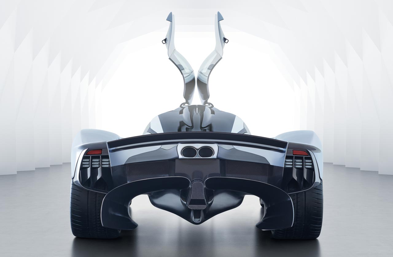 Desarrollado entre la firma británica y Red Bull Advanced Technologies, este “hypercar” fue construido con materiales livianos y fue objeto de un desarrollo aerodinámico que ha sido clave en la definición del diseño exterior.