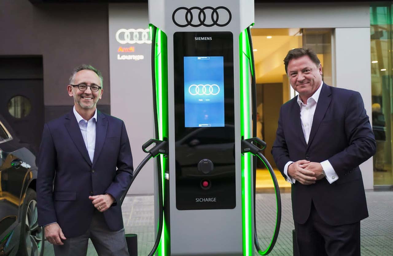 En el Audi Lounge, ubicado en la reconocida esquina de Figueroa Alcorta y Tagle de la Ciudad de Buenos Aires, se emplaza un cargador Sicharge D de SIEMENS que es el más potente del país y el primero en la vía pública en la Ciudad de Buenos Aires.