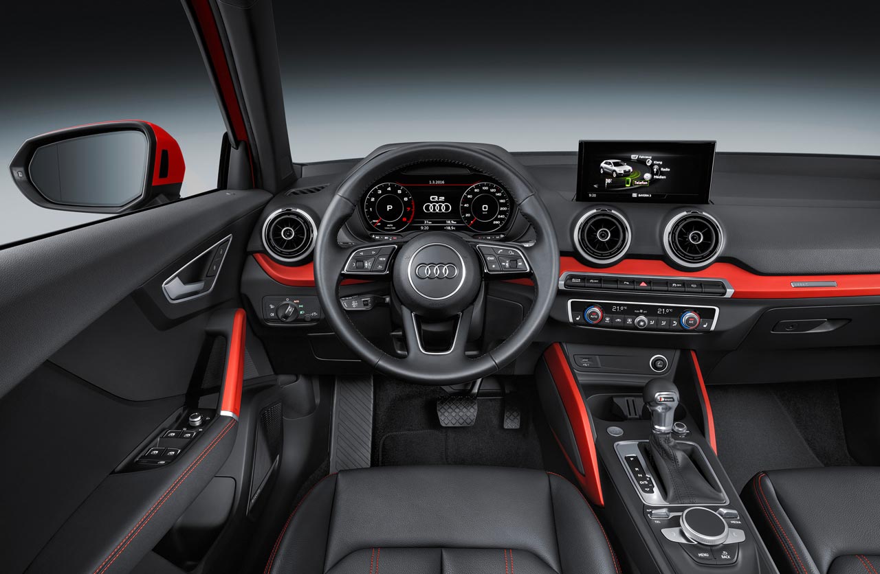 En el interior, el Q2 Sport posee asientos deportivos, apliques específicos y tapizado con cuero y cuero sintético. Otras de las opciones de tapizado son las Gris Petróleo-Amarillo Vegas, Gris Roca-Gris Roca, Negro-Negro, Negro-Negro-Gris Roca Y Rojo Tango-Negro-Rojo Tomate. Por su parte, el baúl cuenta con un volumen de 405 litros.