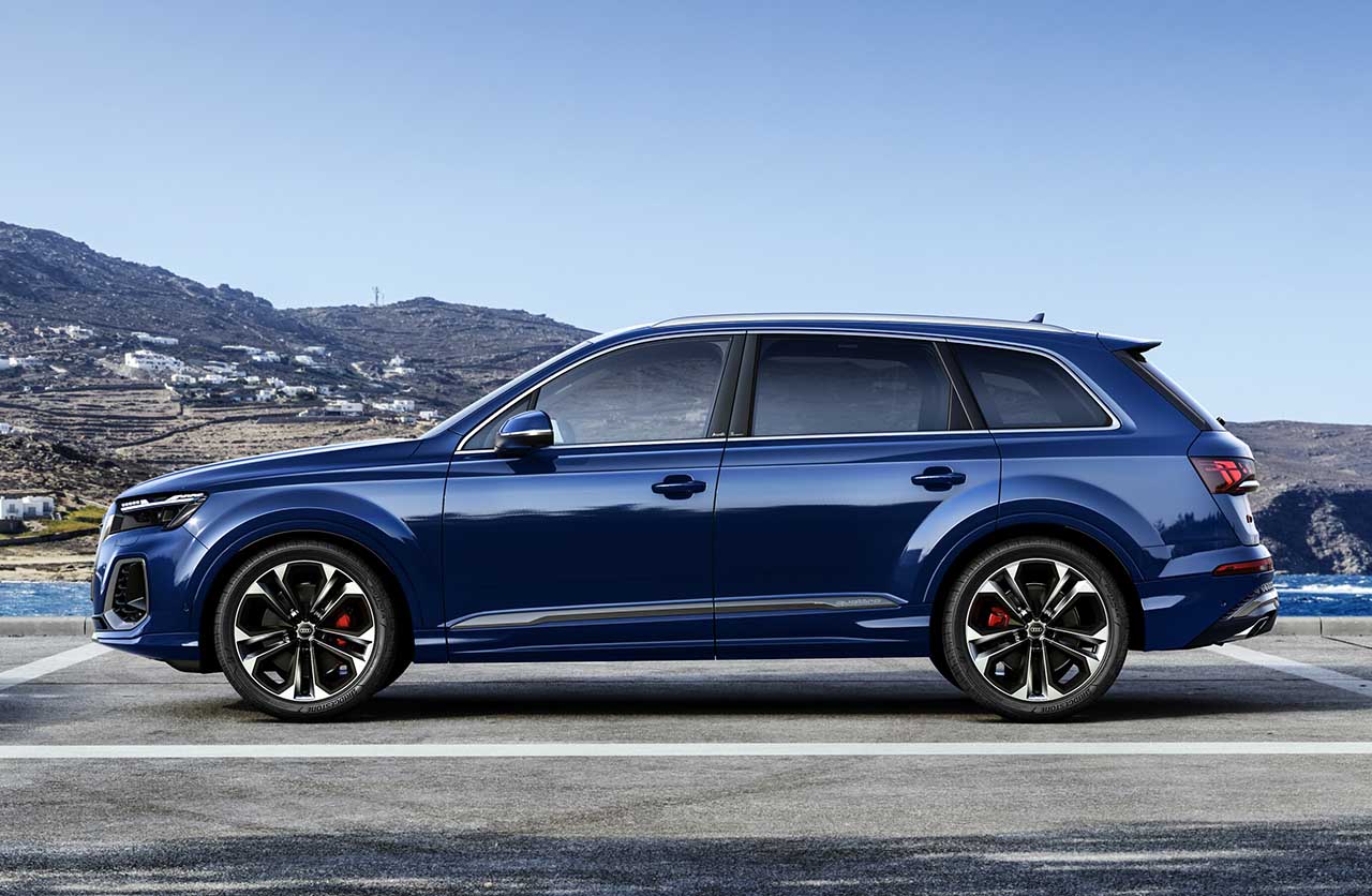 Las versiones del renovado Q7 son las turbodiésel 45 TDI (231 CV) y 50 TDI (286 CV) y la naftera 55 TFSI (340 CV). Todas incluyen un sistema híbrido suave MHEV junto a la caja automática de ocho marchas, la tracción integral permanente quattro y suspensión neumática.