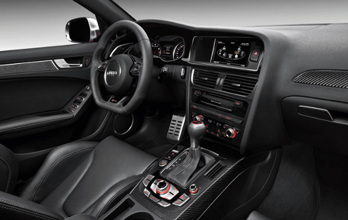 El interior, revestido en color negro y con inserciones de carbono, trae asientos deportivos de serie con ajuste eléctrico, tapizados en cuero negro y Alcántara, volante multifunción, pantalla MMI con información al conductor, entre otros.