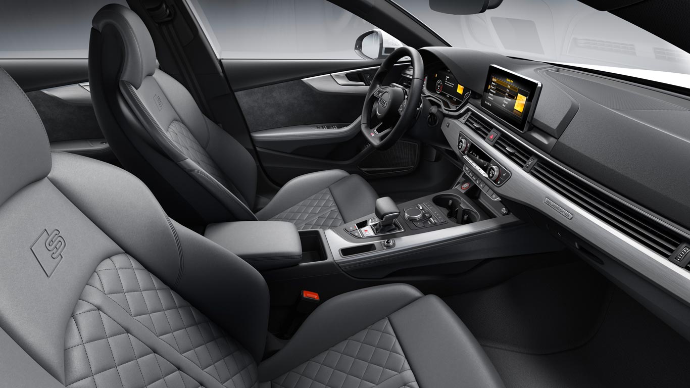En el interior, la personalización incluye butacas deportivas con cuero negro y otros detalles propios de personalización. Además, tienen el Audi virtual cockpit (opcional), con pantalla de 12,3 pulgadas, head-up display (opcional) y sistema multimedia con pantalla de 8,3”.