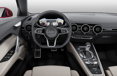 El habitáculo posee cuatro asientos individuales y, como sucede en el TT, utiliza el denominado Audi virtual cockpit, el cual consta de una pantalla de 12,3 pulgadas que reemplaza a los instrumentos del tablero y al monitor MMI. Otro detalle interesante, también heredado del modelo de serie, es el sistema de climatización integrado en las salidas de ventilación.