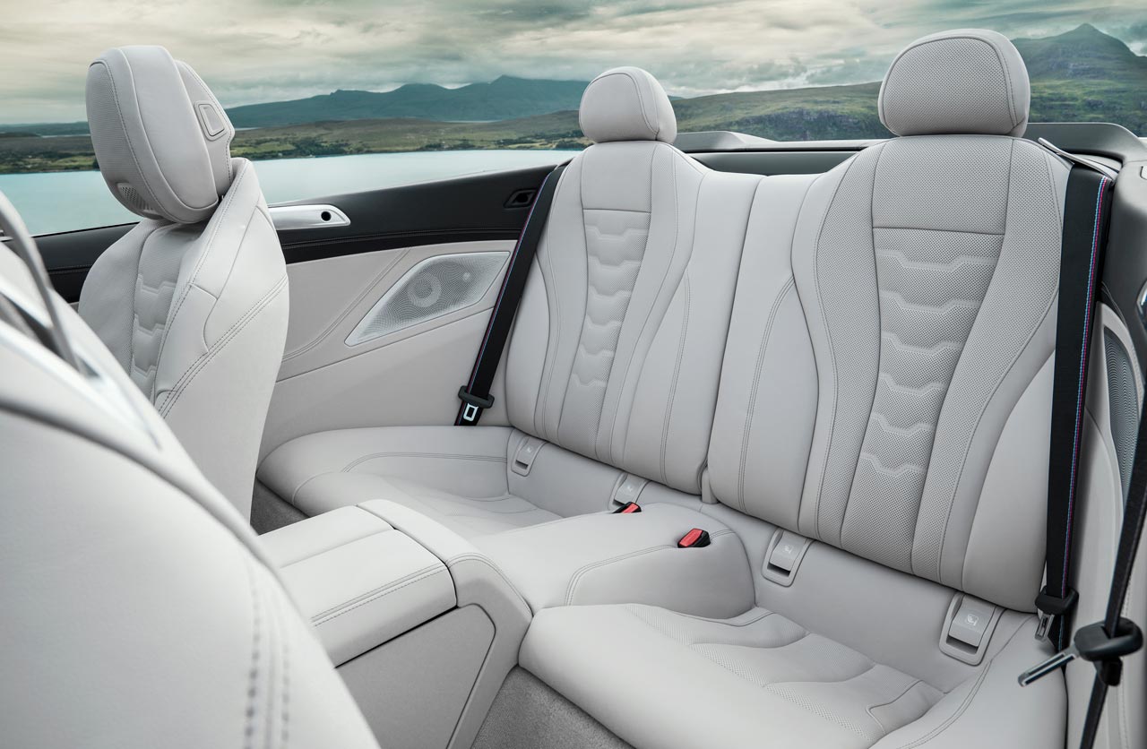 Para proteger a los ocupantes, y ante la ausencia del techo metálico, el Serie 8 Cabrio posee parabrisas con marco reforzado y una protección que se despliega gracias a una carga pirotécnica detrás de los asientos traseros. En el rubro del confort tiene deflector de viento que se coloca detrás de las plazas traseras y calefacción para el cuello en las plazas delanteras (opcional).
