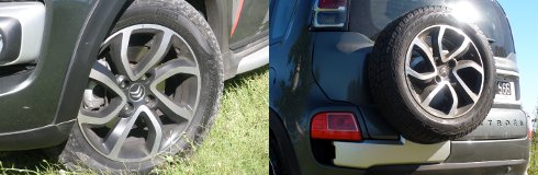 Levantar el C3 Aircross no requirió mayor esfuerzo, solo hubo que girar un buen rato la manija del “gato” que no es la más cómoda de operar. Colocar la rueda nueva en el lugar justo para entrar los cuatro bulones no fue lo más fácil, ya que no había forma de fijarla ante los agujeros, tarea dificultada por la falta de luz. Finalmente y sin contar el tiempo extra que llevó utilizar por primera vez todo el equipo, el neumático estaba cambiado, la rueda pinchada en el soporte del baúl y todo guardado en su lugar.