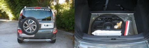 La posición del auxilio, criticada a la hora de abrir el baúl, resulta ahora una bendición, permitiendo retirar la rueda sin mayores esfuerzos. Hay que recordar que en cada llanta hay que retirar primero un cubre tuerca de plástico para lo que se utiliza una suerte de pinza del mismo material.