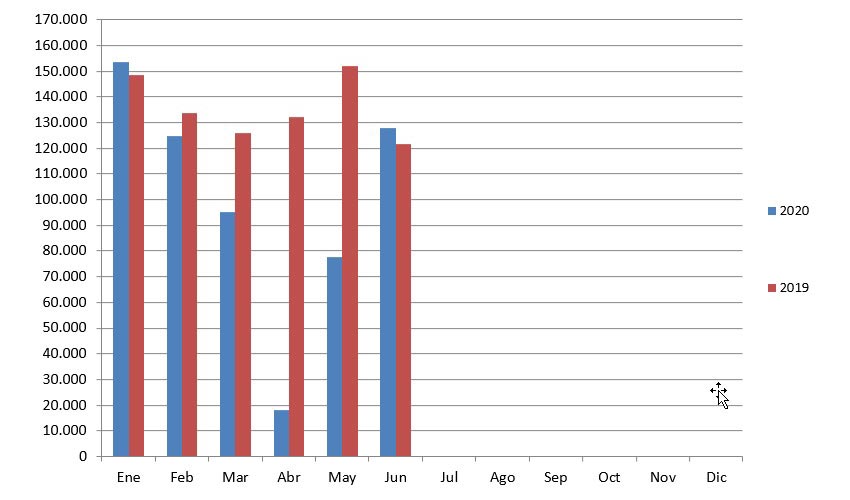 Así, en los 6 primeros meses se vendieron 596.911 unidades, un 26,68% menos que en el primer semestre de 2019 (814.159 vehículos).