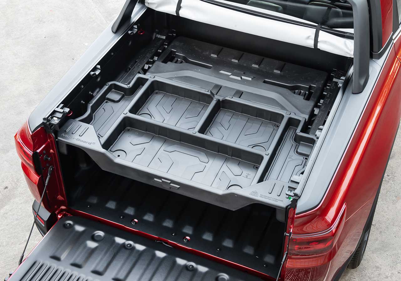 Las diferencias se extienden al interior de la pick up, que cuenta con un nuevo tapizado con cuero y un color rojo (incluyendo las costuras) que se expande al panel y el volante. También hay zonas -como la consola central- con tono negro brillante.