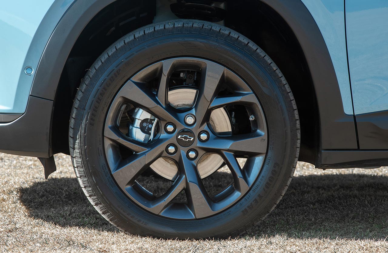La Tracker 100 Años, en cambio, está basada en la versión Premier (la más equipada de la gama) y posee el nuevo color de carrocería Azul Noronha junto a detalles oscurecidos: llantas exclusivas, moños de marca y barras de techo.