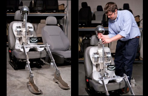 “Oscar representa a nuestros consumidores,” comentó Daniel Cohen, ingeniero a cargo de los asientos del Malibu. El maniquí está articulado mecánicamente por la cadera o punto “H”, simulando el eje de rotación real del tronco y el muslo del individuo. Basados en ese punto, los ingenieros y diseñadores del interior determinan el espacio libre para la cabeza y el ángulo óptimo de la espalda que debería ofrecerse. Esta información influye de manera directa en la futura disposición del volante, los pedales, los espejos retrovisores, tablero de instrumentos y demás controles de manejo, asegurando el más amplio espacio y comodidad a todos los clientes.