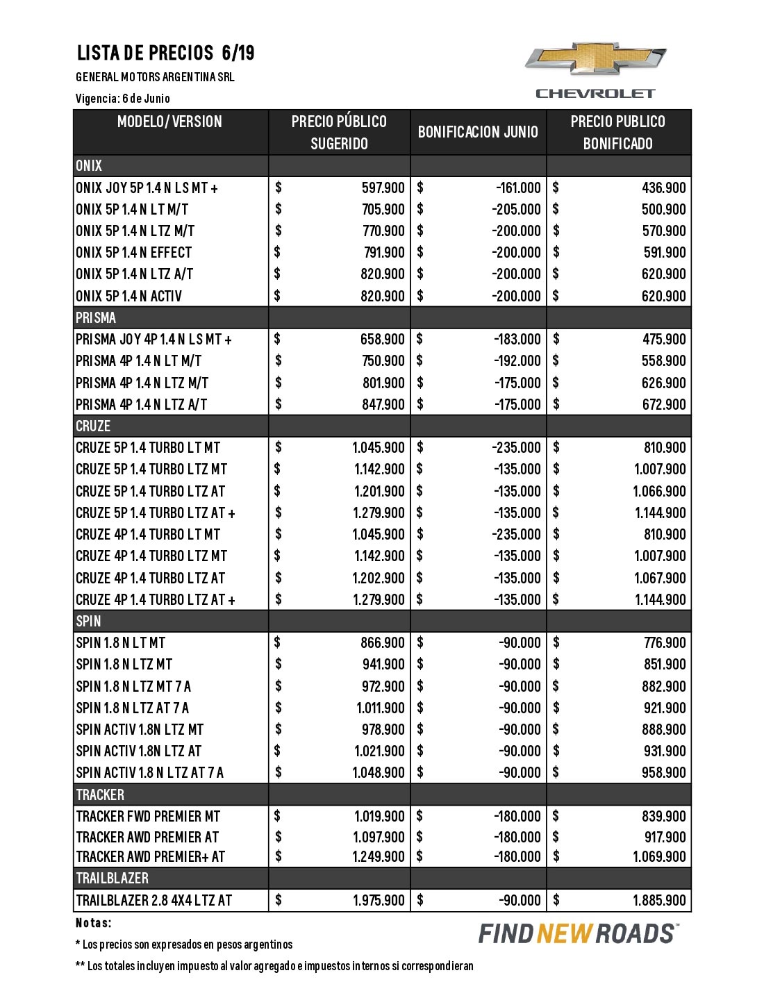 * Nota actualizada el 7/6 con la nueva lista de precios comunicada por General Motors.