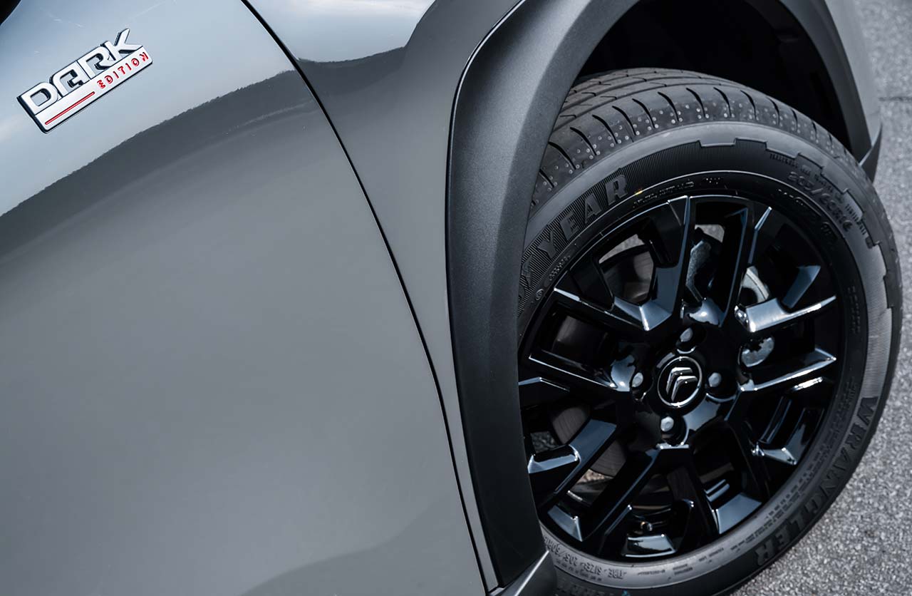 Con una propuesta más deportiva, el exterior también posee llantas de aleación de color negro y 16 pulgadas, paragolpes con placas protectoras y apliques rojos que se extienden al alerón trasero. Adicionalmente, cuenta con emblemas Dark Edition laterales y logotipos oscurecidos.