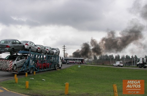 Decenas de camiones “mosquito” cargados de vehículos se amontonaban desde las primeras horas de la mañana de hoy en el acceso principal a la zona portuaria de Zárate. Una protesta de vecinos del barrio Villa Agur, en la periferia de esa ciudad interrumpió el intenso tráfico de camiones, con quema de neumáticos y barricadas armadas con colectivos, motos y todo tipo de obstáculos.
