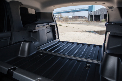 Es así que en dicho sector se colocó una pieza plástica en tonalidad oscura cuyo diseño se asemeja al de una caja de carga. Posee paredes laterales y su superficie plana incluye un largo de aproximadamente 1,4 metros, junto con una anchura de un metro.