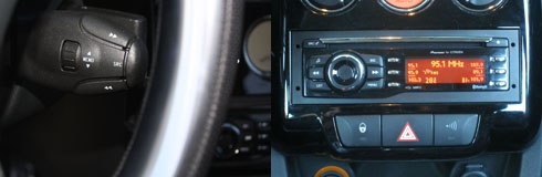 El nuevo estéreo cuenta con una gran perilla para controlar el volumen, el resto de las funciones no son tan simples de utilizar debido al reducido tamaño de los botones. Ubicado muy abajo y lejos de la vista, su uso se complica ya que no hay una pantalla en la parte superior del tablero que permita visualizar las acciones realizadas. La contraprestación la da el control insertado en la columna de dirección con el clásico formato del Grupo PSA. Además, permite atender el teléfono vía Bluetooth, una nueva función en los estéreos de Citroën en el segmento de los compactos.