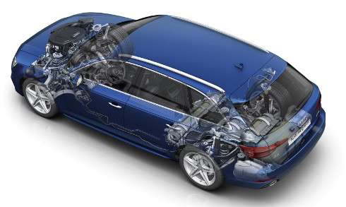 Por la presencia de dicho módulo, Audi tuvo que eliminar la rueda de auxilio (seguramente ofrece un kit para pinchazos), así como trasladar la batería desde el baúl hasta el al vano motor.