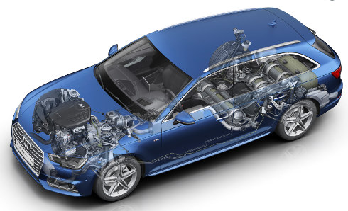 Este Audi además posee un controlador electrónico que reduce la presión del gas -mayor de 200 bares- hasta un nivel de 5 a 10 bares en el motor. Ofrece baja presión cuando se conduce en forma eficiente a baja velocidad, y otra más elevada cuando se requiere más potencia y torque.
