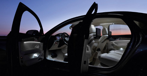 En el frente del vehículo se luce una gran parrilla cromada, conjugada con faros de tecnología 100% LEDs, con limpiafaros. Las luces traseras también se han construido con tecnología LED, utilizando los denominados “chip on board”, que permiten ser insertados con gran precisión y a corta distancia.