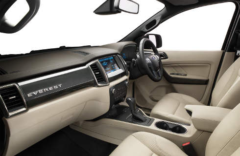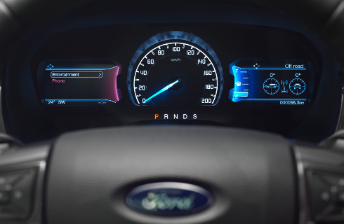 En el habitáculo se caracteriza por su amplio espacio con tres filas de asientos que le permiten transportar a siete pasajeros. El estilo interior es similar al de la Ranger, destacando el tablero con velocímetro analógico respaldado por dos generosas pantallas digitales, además de la pantalla táctil de 8 pulgadas en el centro de la escena.