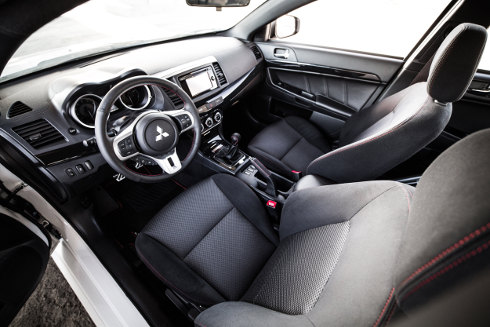 El motor trabaja en sociedad con una caja manual con sólo cinco velocidades y con la tracción integral permanente Super All-Wheel Control (S-AWC) con reparto de hasta 50:50, mientras que la suspensión incluye amortiguadores Bilstein y resortes Eibach, y los frenos son de la firma Brembo.