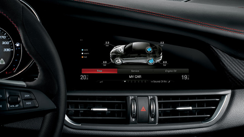 A eso se le suma la presencia del Alfa DNA, selector que mediante una rueda en la consola permite modificar la respuesta del vehículo. Posee los modos de manejo Dynamic, Natural, Advanced Efficient y Racing.