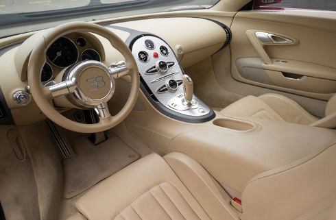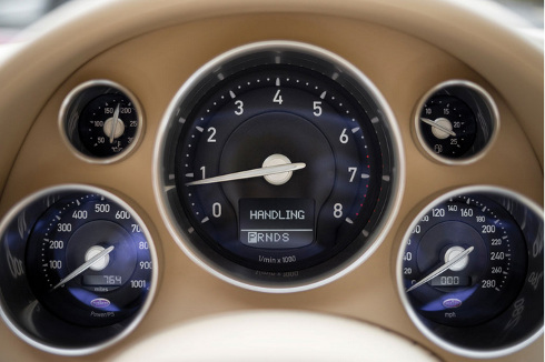 En el habitáculo, este Bugatti combina la presentación en beige de la plancha, los tapizados y las alfombras con las diferentes piezas en tonalidad metálica. El tablero cuenta con cinco instrumentos de aguja y el volante incluye las levas de la caja.