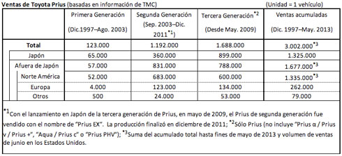 Toyota anunció que las ventas acumuladas de su modelo Prius superaron la marca de los 3 millones de unidades a nivel global a fines de junio pasado.