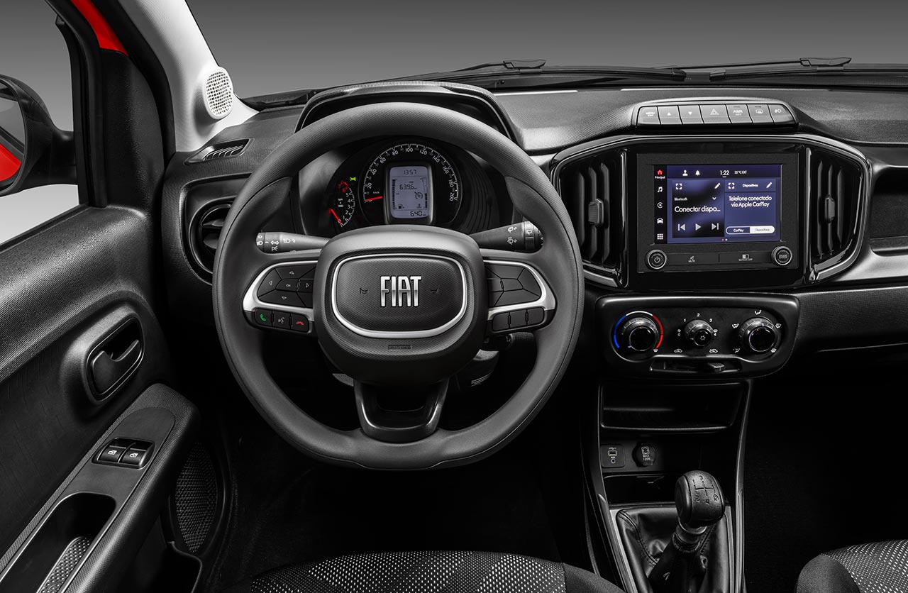 El cambio más importante del modelo es para el habitáculo, que le dio la bienvenida al panel de a bordo incorporado inicialmente por la Strada y posteriormente por la Fiorino. A eso se suma el nuevo volante con el estilo actual de la marca y mejoras en los espacios de almacenamiento.