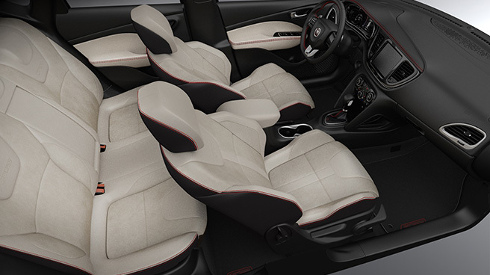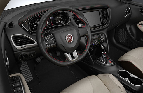 La personalización de este Fiat también se ha extendido puertas adentro, donde al conocido diseño general le sumó tapizados en color natural -para puertas y asientos- y costuras en rojo para esas piezas y el volante.