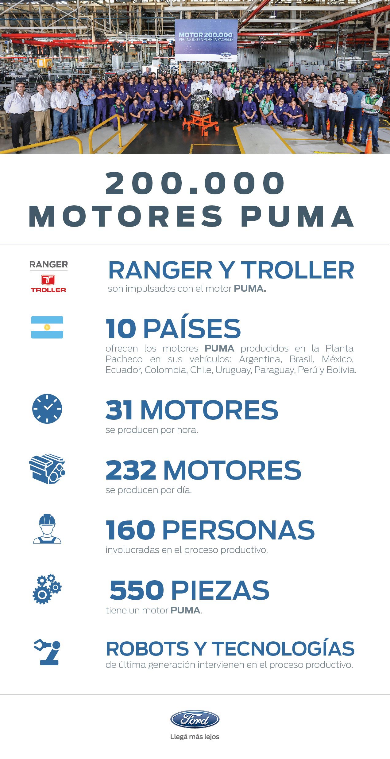 Ford Argentina celebra la producción del motor Puma número 200.000 en su planta ubicada en General Pacheco. La planta fue inaugurada en 2011 para producir los motores Diesel que equipan a la Nueva Ranger, fabricada en Argentina y productos Troller, producidos en Brasil.