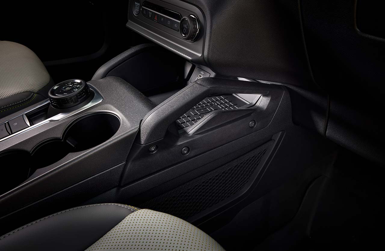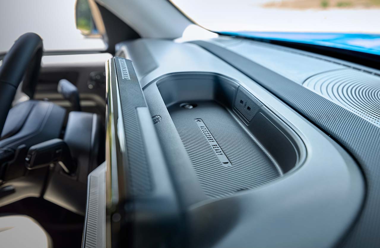 En el interior posee un nuevo tablero totalmente digital de 12,3” y cambios en la consola central, que aloja a la nueva pantalla de 13,2” para el sistema multimedia, que además posee SYNC 4 con Apple CarPlay y Android Auto inalámbricos.