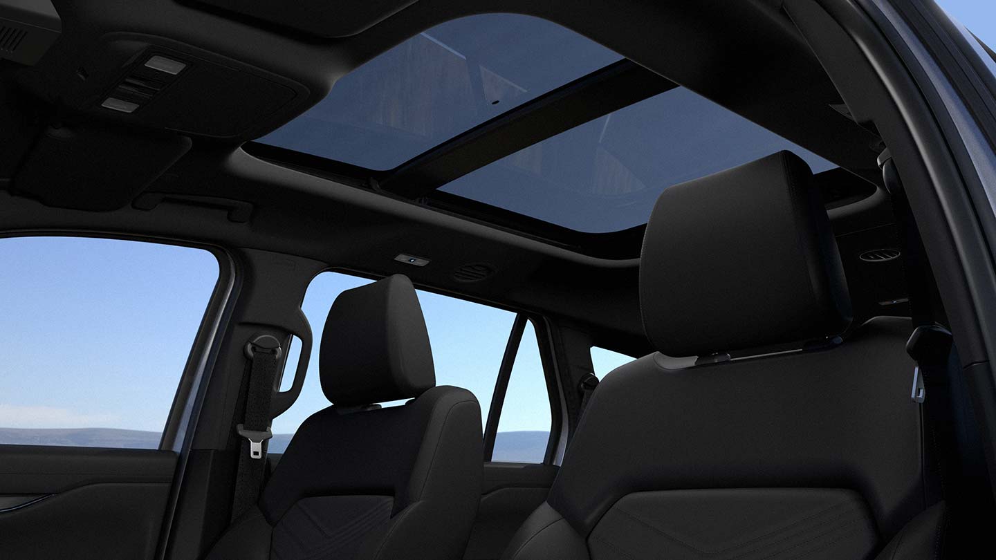 El equipamiento viene con tablero digital de 8 pulgadas, pantalla multimedia de 12”, SYNC4, conectividad inalámbrica, llantas de aluminio de 20”, acceso sin llave, encendido con botón, cargador inalámbrico, techo panorámico corredizo, asientos delanteros eléctricos y calefaccionados, portón trasero eléctrico y tapizado de cuero.