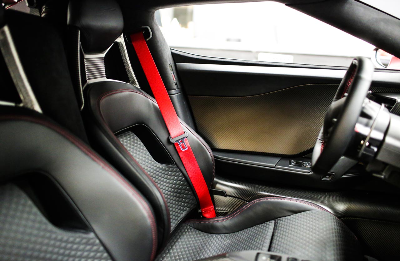 En cuanto a su interior, los asientos de fibra de carbono y el volante están revestidos de cuero con costura roja y las correas de los cinturones de seguridad también son del mismo color.