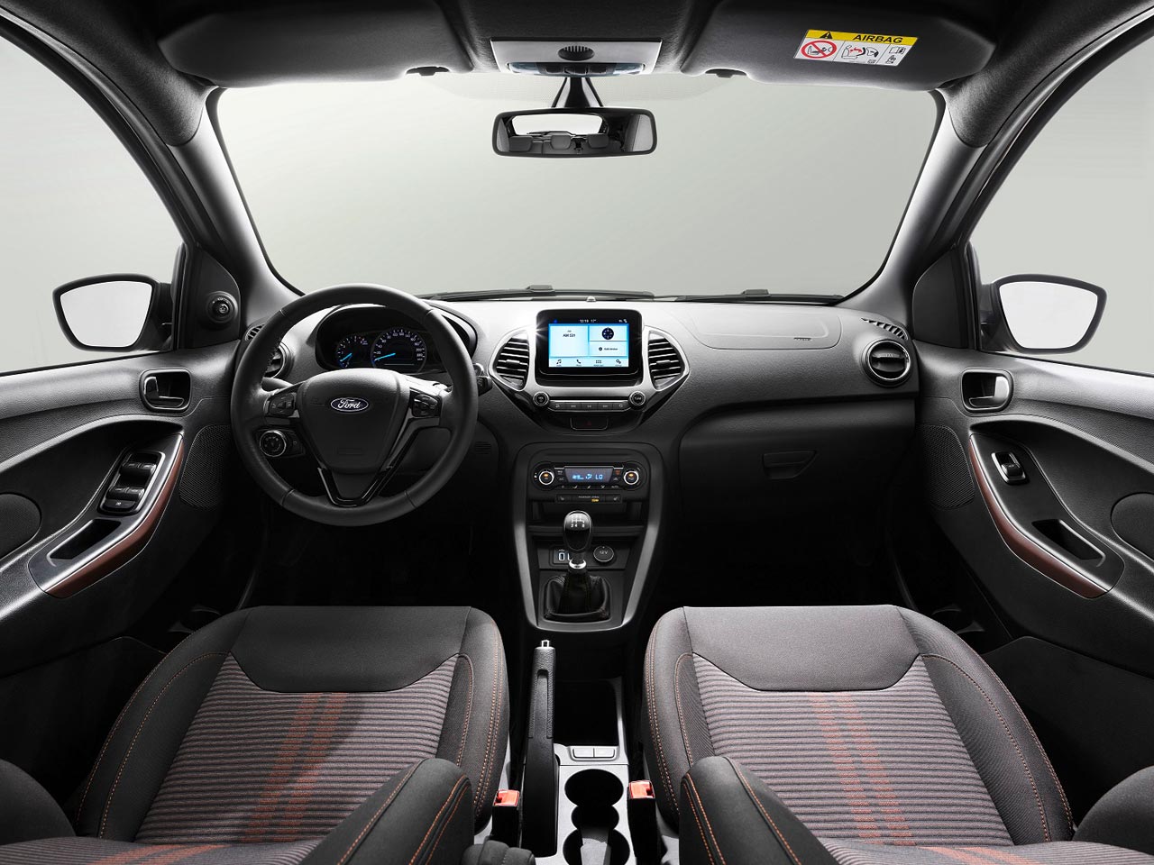 Otra de las novedades de este nuevo Ka se encuentra en el interior, donde posee un panel de a bordo parcialmente renovado, con una zona central en la que cuenta con una nueva pantalla táctil y “flotante” de 6,5 pulgadas. También hay nuevos tapizados y apliques de color en las puertas.