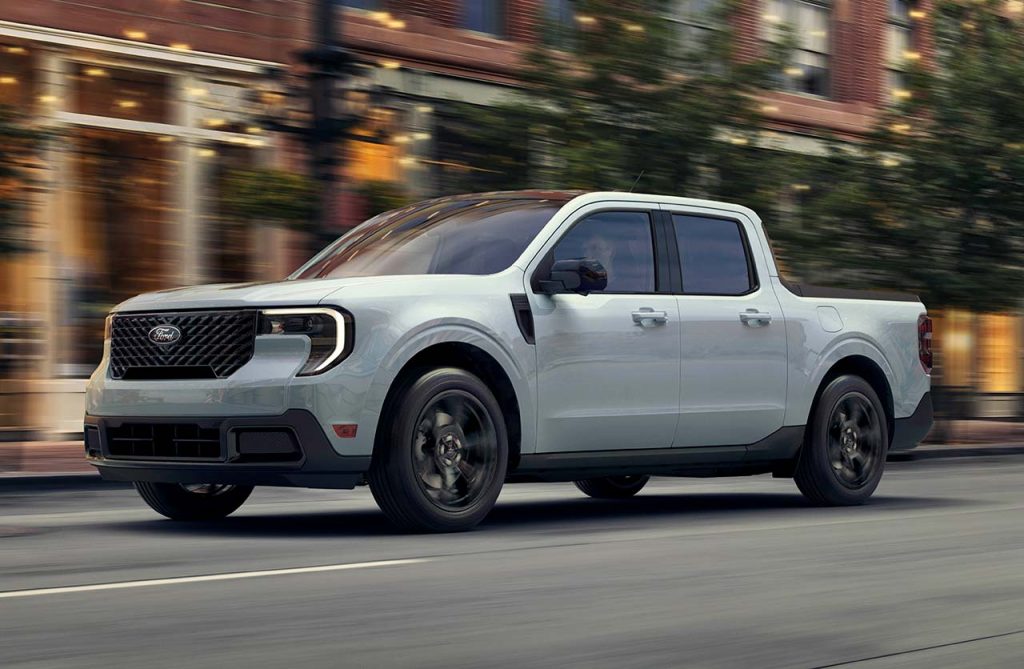 Imagen anteriorImagen siguiente 2025-Ford-Maverick-Lariat-with-Black-Appearance-Package-in-Space-White
