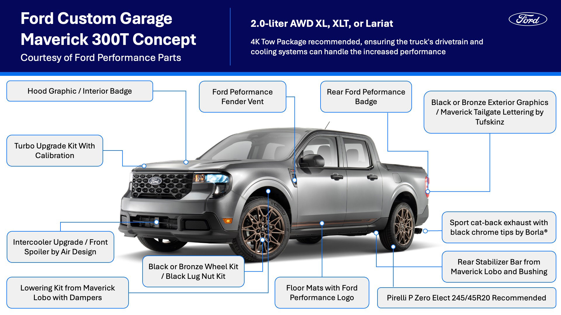 Ford aprovechó el SEMA 2025 para presentar la Maverick 300T. Se trata de un proyecto basado en la compacta, y que se convertirá en un kit disponible en el mercado estadounidense en 2026.