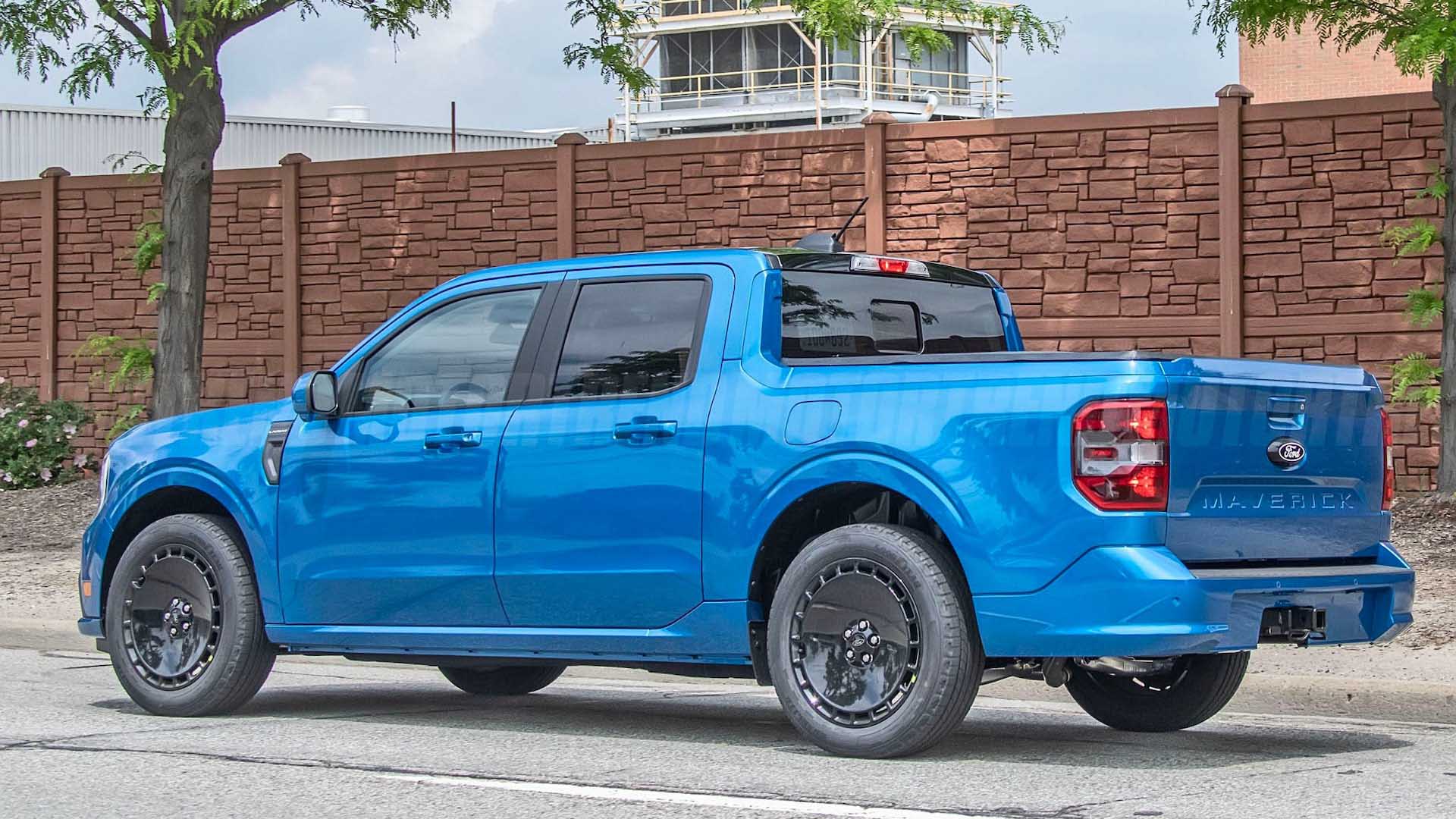 La Maverick fotografiada tiene el emblema que indica que se trata de la versión Lariat, aunque su estética, incluyendo unas llamativas llantas de color negro, podrían indicar la presencia de un paquete con estilo deportivo.