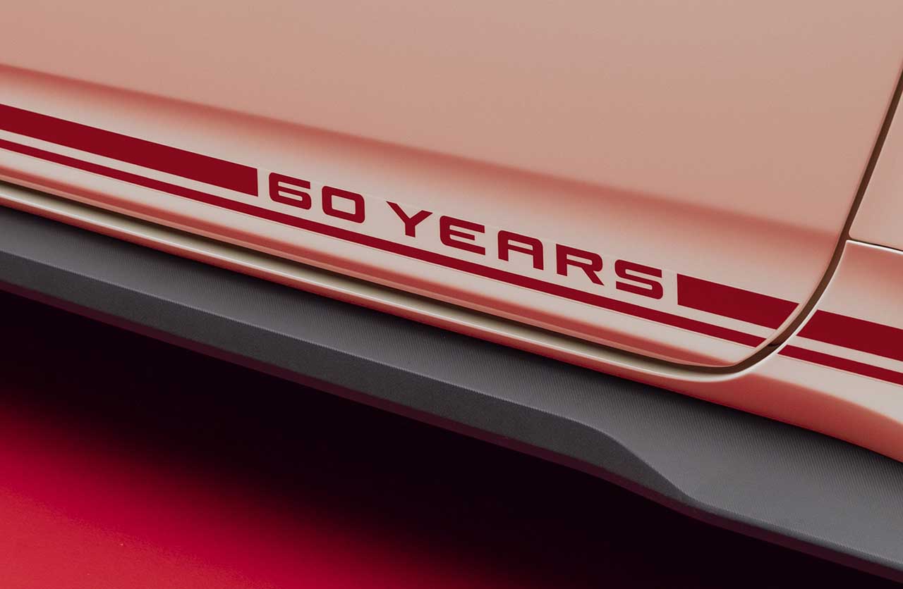 Por otro lado, la edición especial incluye zonas laterales con insignias, franjas y llantas -de aleación de 20 pulgadas- también basadas en el auto original. Estos detalles se combinan con los colores de carrocería azul, blanco o rojo.