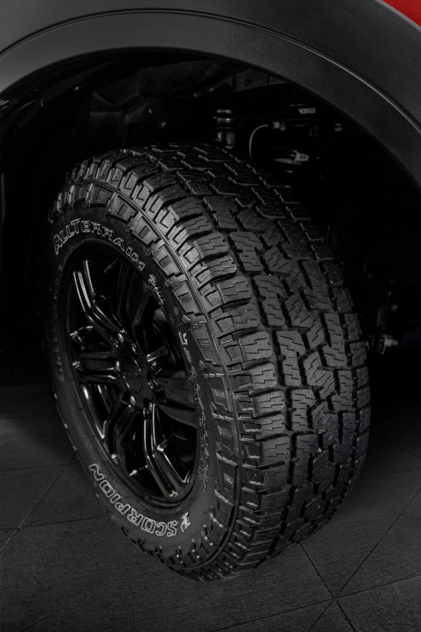 A lo mencionado anteriormente se suman los apliques negros en los guardabarros, los estribos y la barra de caja específica y negra, como las llantas de aleación de 17 pulgadas, que se combinan con los neumáticos todo terreno Scorpion AT Plus (desarrollados conjuntamente con Pirelli). Además, cuenta con ópticas traseras oscuras.