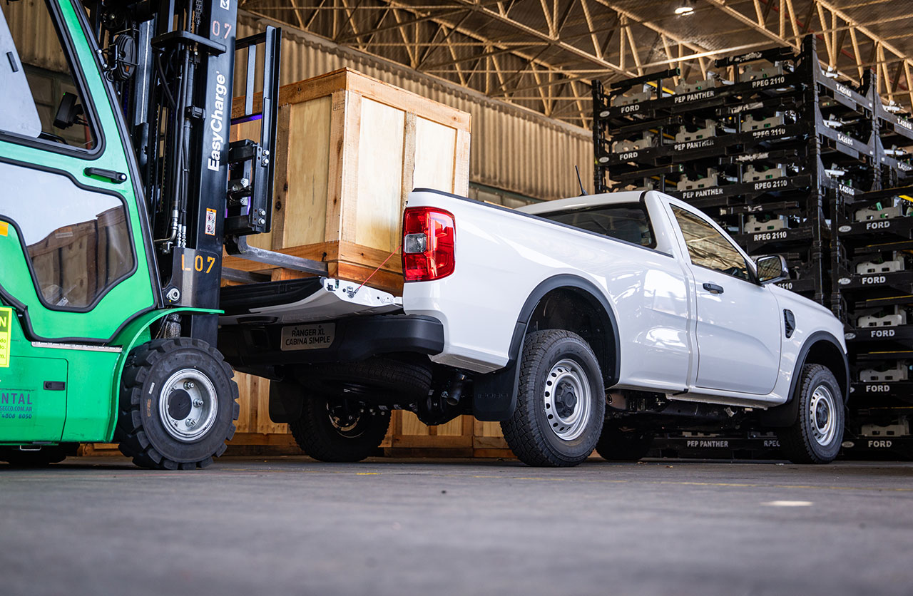 La nueva Ranger Cabina Simple tiene una caja de carga 48% más larga respecto de la carrocería Doble Cabina. Se combina con un ancho -entre pasarruedas- de 1.238 mm. A esto se suma un despeje del suelo de 228 mm.