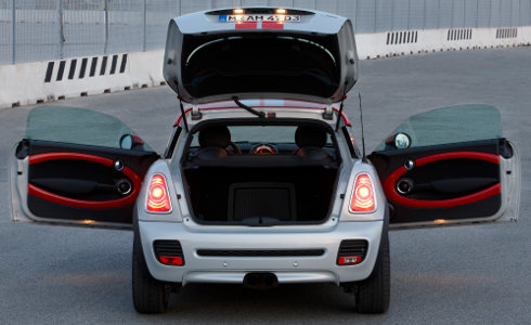 El diseño de serie con colores de contraste acentúa la forma diferente del techo del MINI Coupé. El baúl de este modelo tiene un volumen de 280 litros y un portón que se abre en gran ángulo. En el interior se acentúa el carácter de coche biplaza mediante la forma moldeada especial del techo y el gran espacio que hay entre el habitáculo y el baúl, posibilitándo así cargar objetos de mayores medidas.