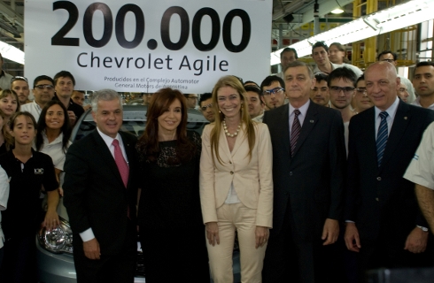 La Presidenta de la Nación recorrió la planta de General Motors, ubicada en la localidad de General Alvear, Rosario. Cristina Fernández de Kirchner estuvo acompañada por la Ministra de Industria, Débora Giorgi, el Secretario General de la Presidencia, Oscar Parrilli, el de Comercio Interior, Guillermo Moreno y el Director Ejecutivo de General Motors de Argentina, Uruguay y Paraguay, Sergio Rocha, quien mostró el avance del plan de inversiones bianual (2011-2012) de $ 600 millones, para aumentar la producción de 130.000 a 160.000 unidades anuales, generar 600 nuevos puestos de trabajo y desarrollar proveedores locales.