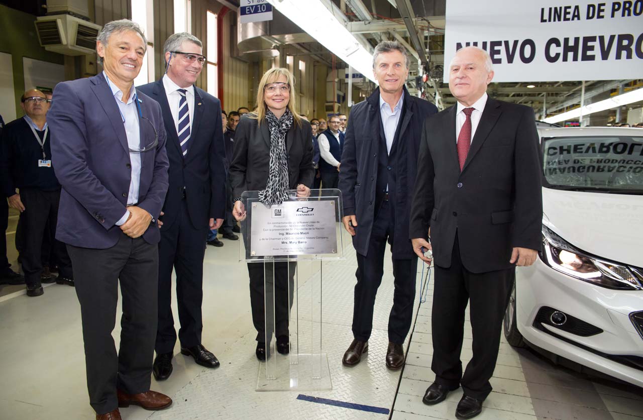 La CEO de General Motors Company, Mary Barra, visitó el Complejo Automotor de la empresa ubicado en Alvear, provincia de Santa Fe, para inaugurar la línea de producción del Nuevo Chevrolet Cruze. El Presidente Mauricio Macri acompañó la ceremonia del inicio de producción de la segunda generación del Chevrolet Cruze, el auto más vendido de la marca en todo el mundo, gracias a una inversión de US$ 740 Millones que se ha realizado para la producción de este nuevo modelo, además de una nueva Planta de Motores que alimentará este vehículo a partir de 2017.