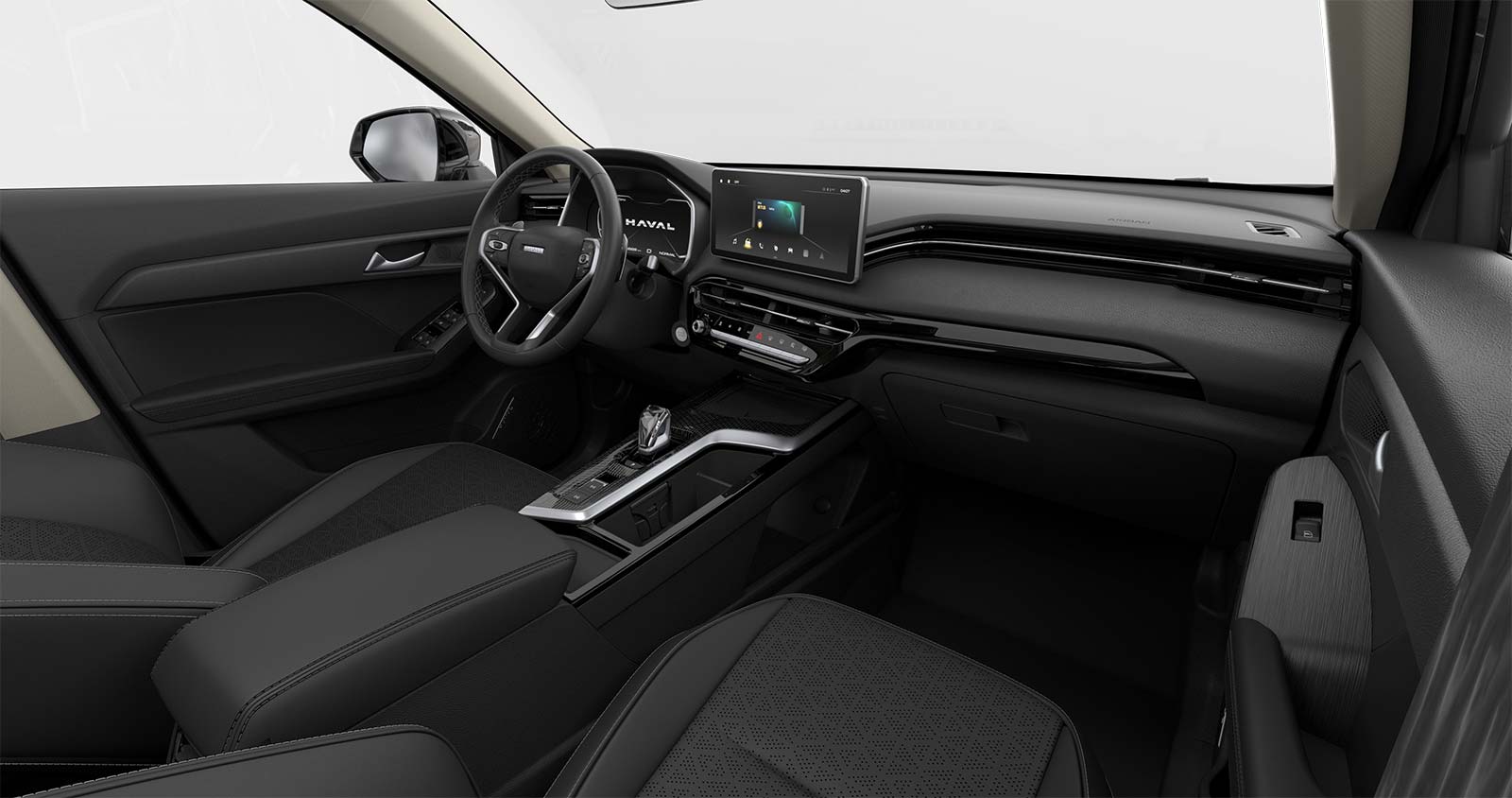El Jolion equipa tapizados de cuero, tablero digital de 7”, asiento de conductor eléctrico, asientos delanteros ventilados y calefaccionados, pantallas multimedia de 10, 25” o 12.3”, cámara de 360°, seis airbags y un paquete de asistencias a la conducción.
