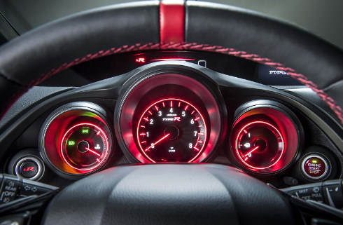 Del interior la marca reveló sólo el tablero, de estilo racing con cuentavueltas analógico central e iluminación en rojo. Además, el volante posee costuras y una marca central en el mismo tono.