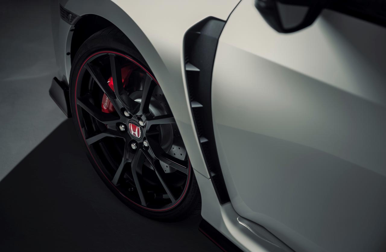 Basado en el Civic Type R Prototype, el auto de producción cuenta con un sector frontal con generosa entrada de aire en el capó, paragolpes con diseño bien deportivo, spoiler inferior y parrilla con un sector en rojo, color que está distribuido en todo el exterior.