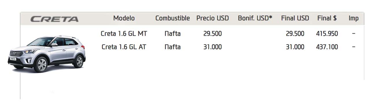 Hyundai Argentina divulgó los precios del nuevo Creta, su SUV perteciente al segmento B, el más popular del mercado y donde hasta el momento la marca de origen coreano no tenía presencia.