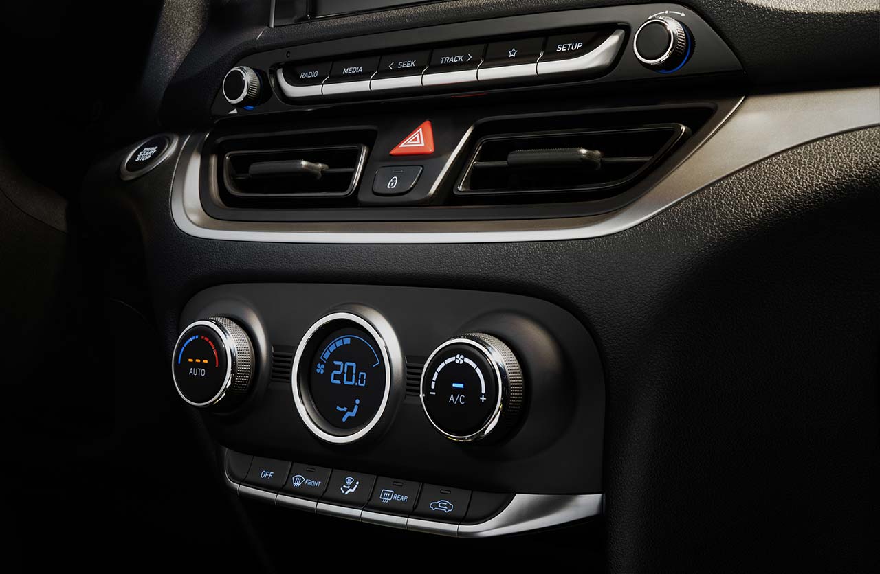 La variante Comfort Plus AT se ubica en el medio de la gama del hatchback y adiciona llantas de aleación de 16 pulgadas, volante con regulación de altura y profundidad y sensores de estacionamiento traseros.