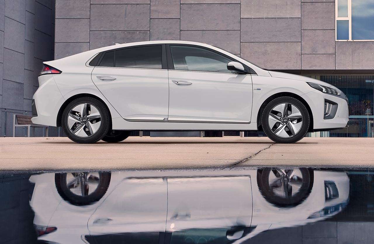 Además, el Ioniq posee sistema de modos de conducción (Eco y Sport), tapizado de cuero, espejo interior automático, asientos delanteros calefaccionados y ventilados y asiento del conductor regulable eléctricamente y con soporte lumbar.